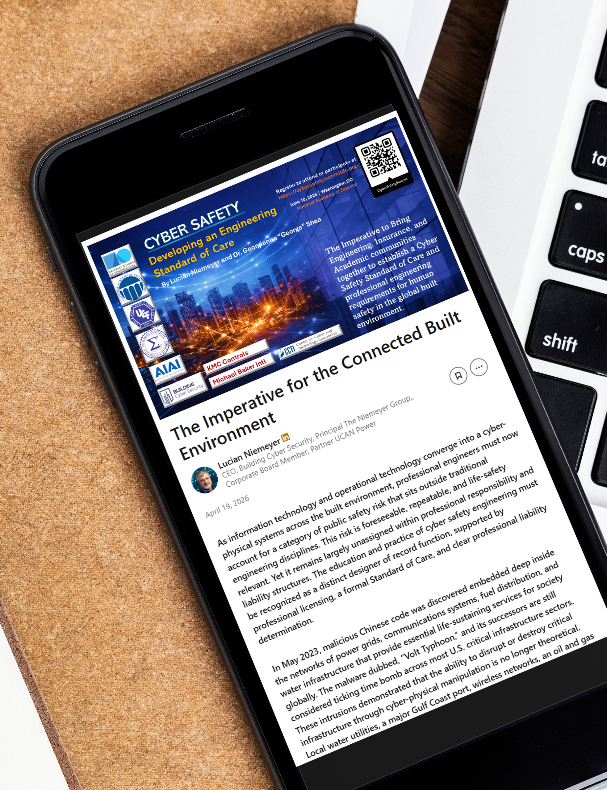 An inaugural Cyber Safety Summit 2026, taking place on June 10, 2026, at the National Academy of Sciences in Washington, D.C., is a national convening of infrastructure owners, insurers, engineers, designers, constructors, academia, and policymakers.